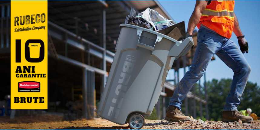 - Ustensile de curățenie marca Rubbermaid Commercial Products, recunoscute pentru durabilitate și inovație.