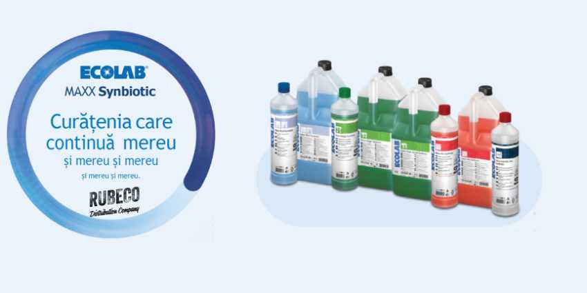 Că exemplu voi prezența gama Ecolab Synbiotic. Conceptul principal al gamei este de a oferi o curățenie “continuă” care depășește simplul moment al aplicării, principalul beneficiu este dat de curățare la nivel microscopic. Pe lângă acțiunea agenților de curățare tradiționali, produsele simbiotice introduc microorganisme benefice (probiotice) care acționează la nivel microscopic. Acestea continuă să descompună murdăria organică și să elimine sursele mirosurilor neplăcute chiar și după ce suprafața a fost ștearsă și uscată.